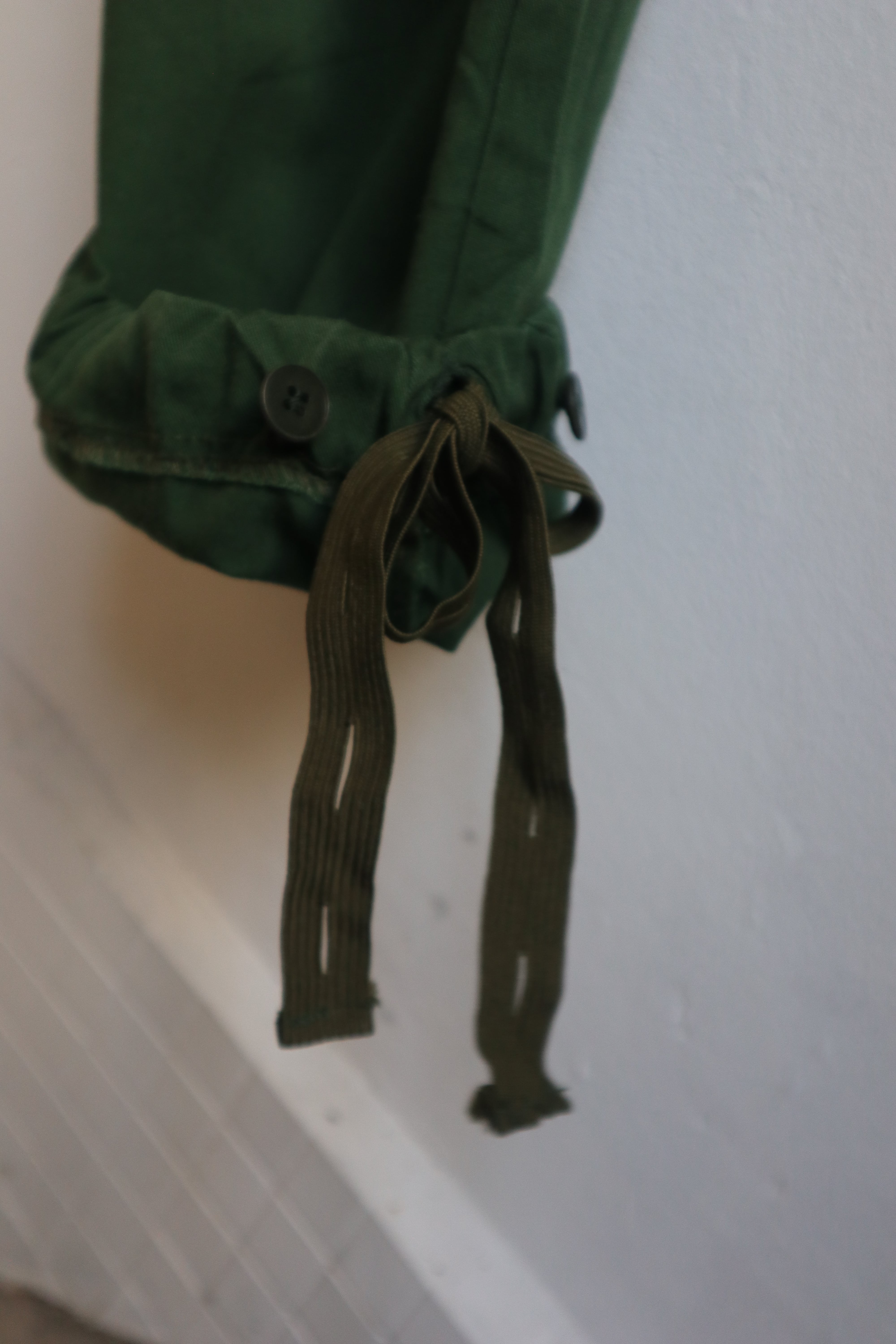 コットンの柔らかい生地で軽く、履きやすい一着。裾は紐で調節が可能です。