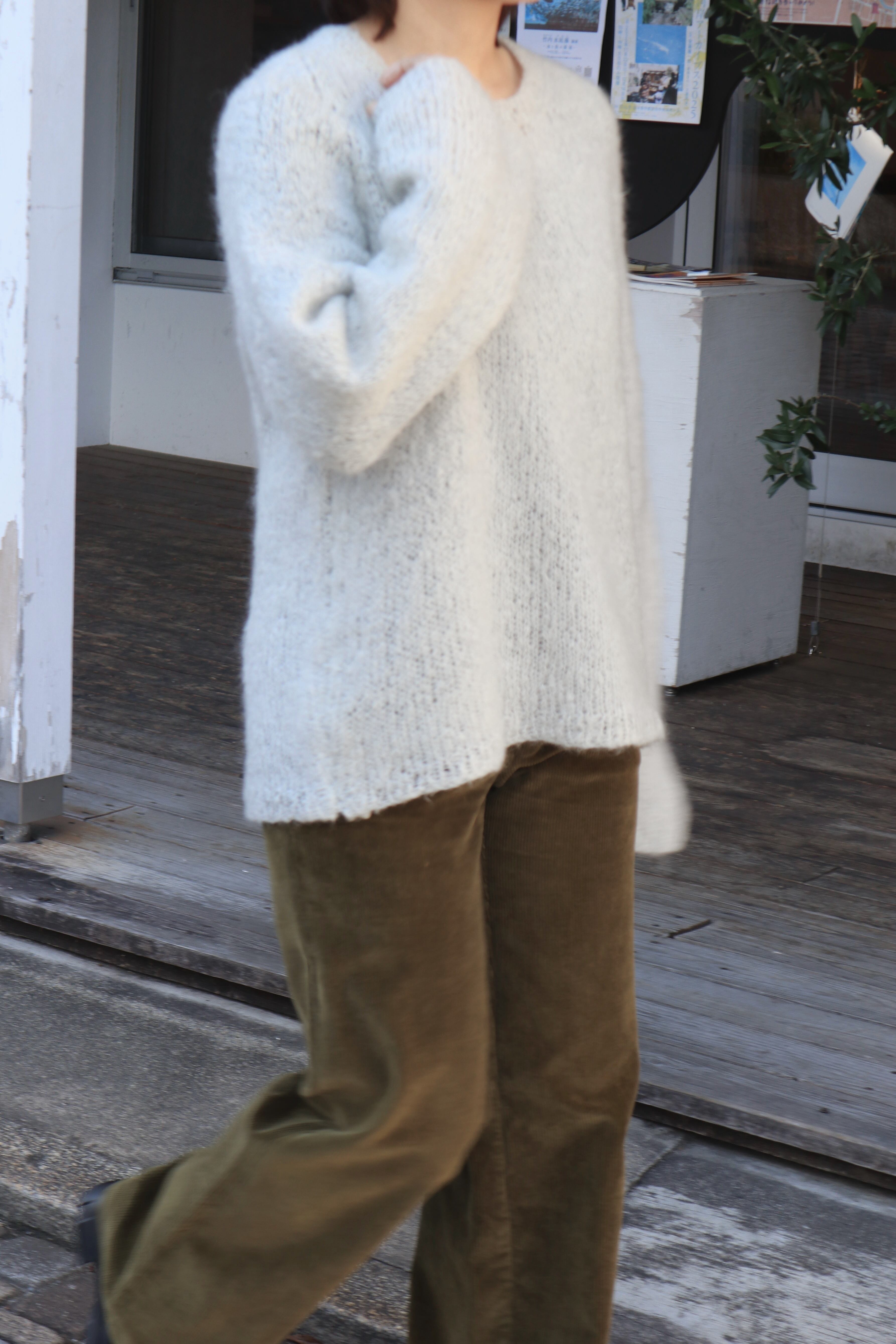 ふんわりとした毛足と軽やかな着心地で、空気をまとうような一枚