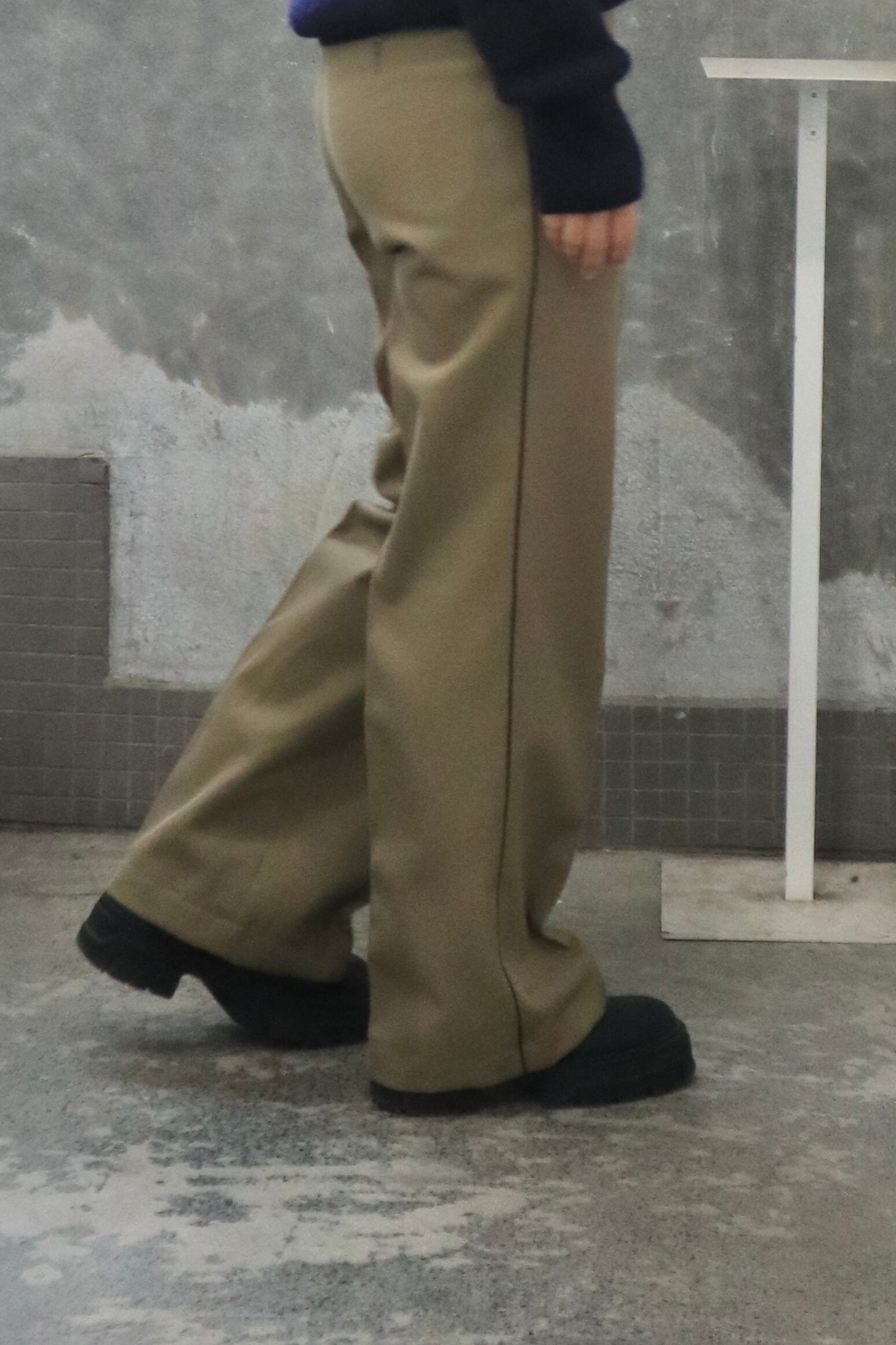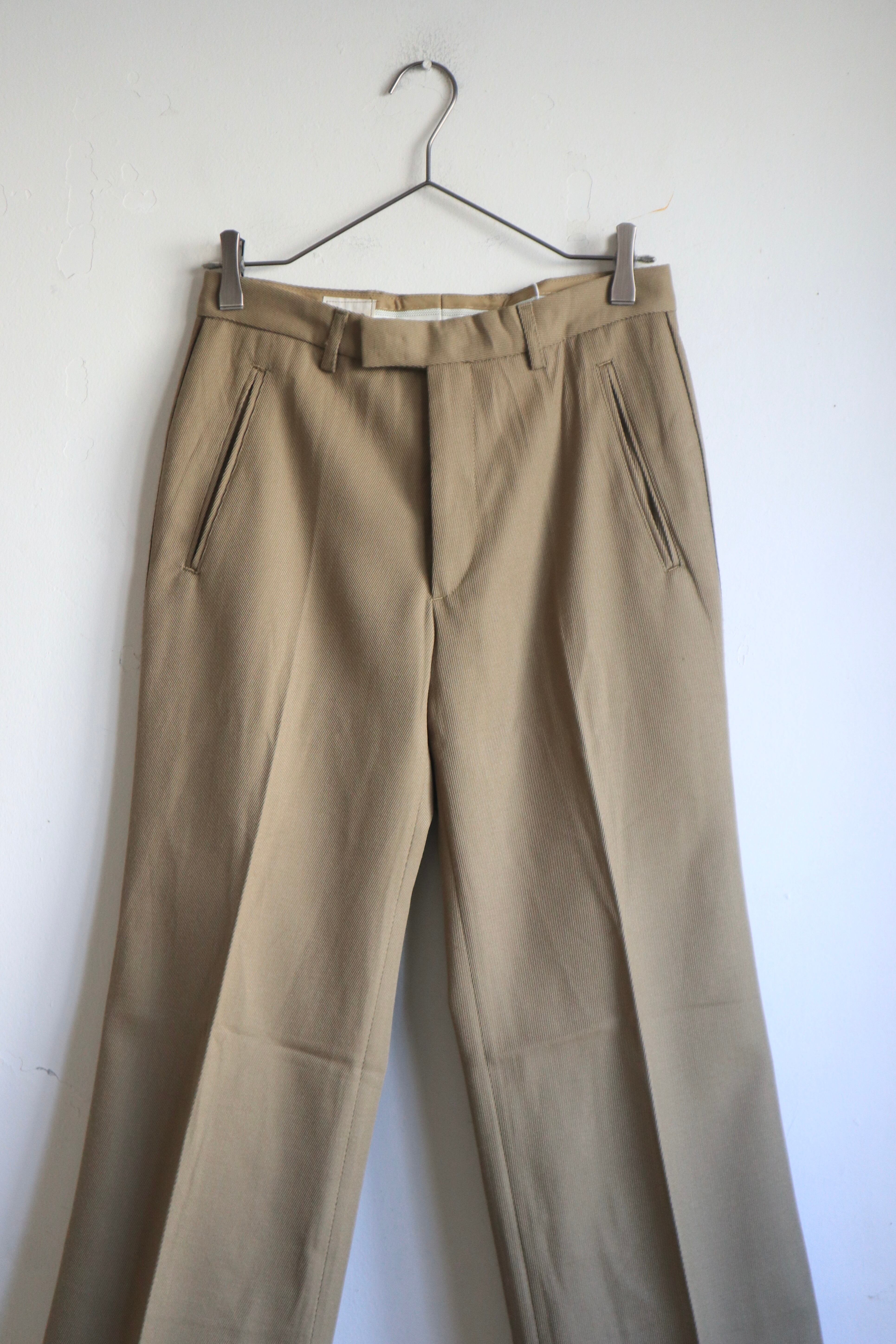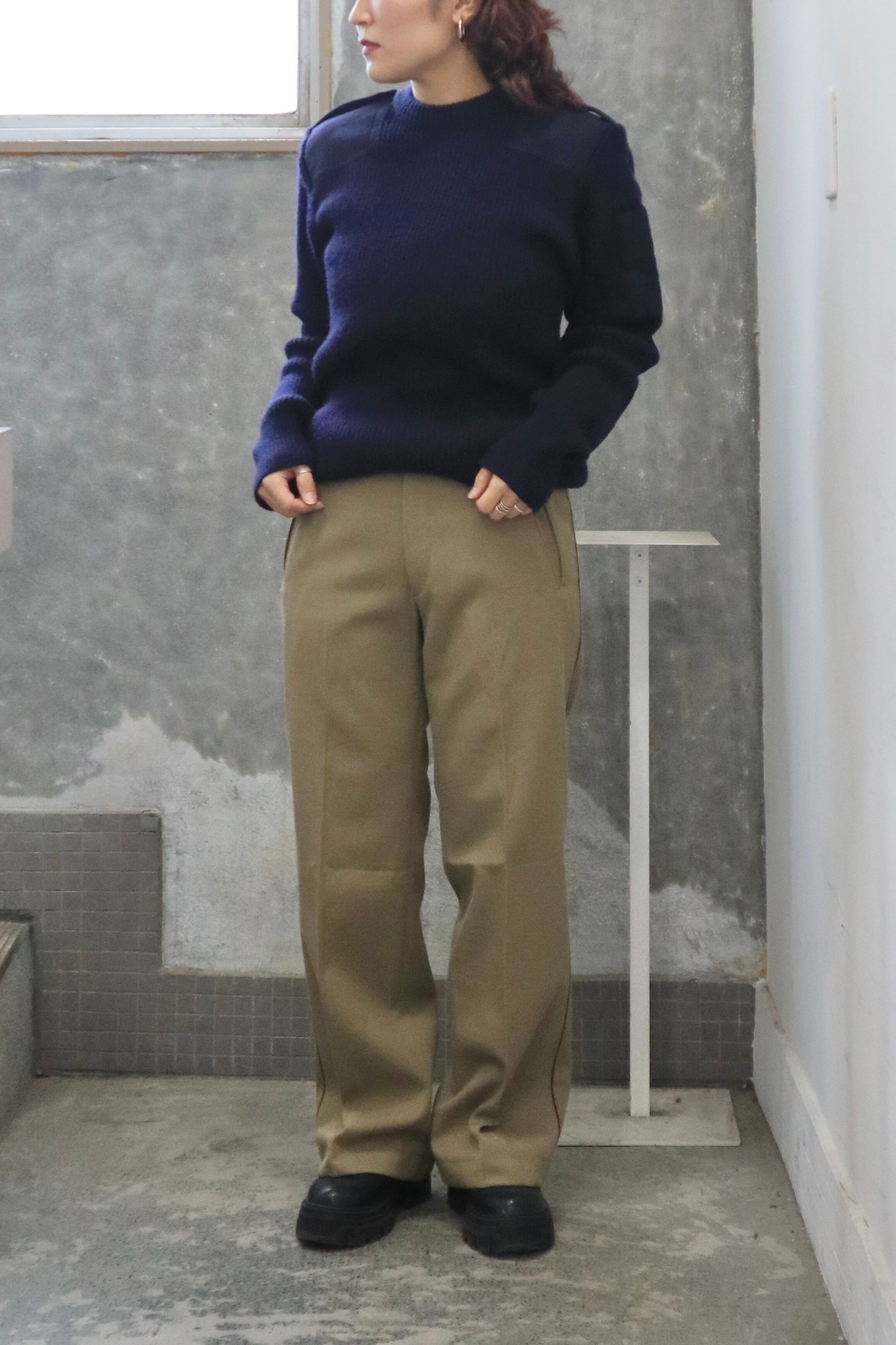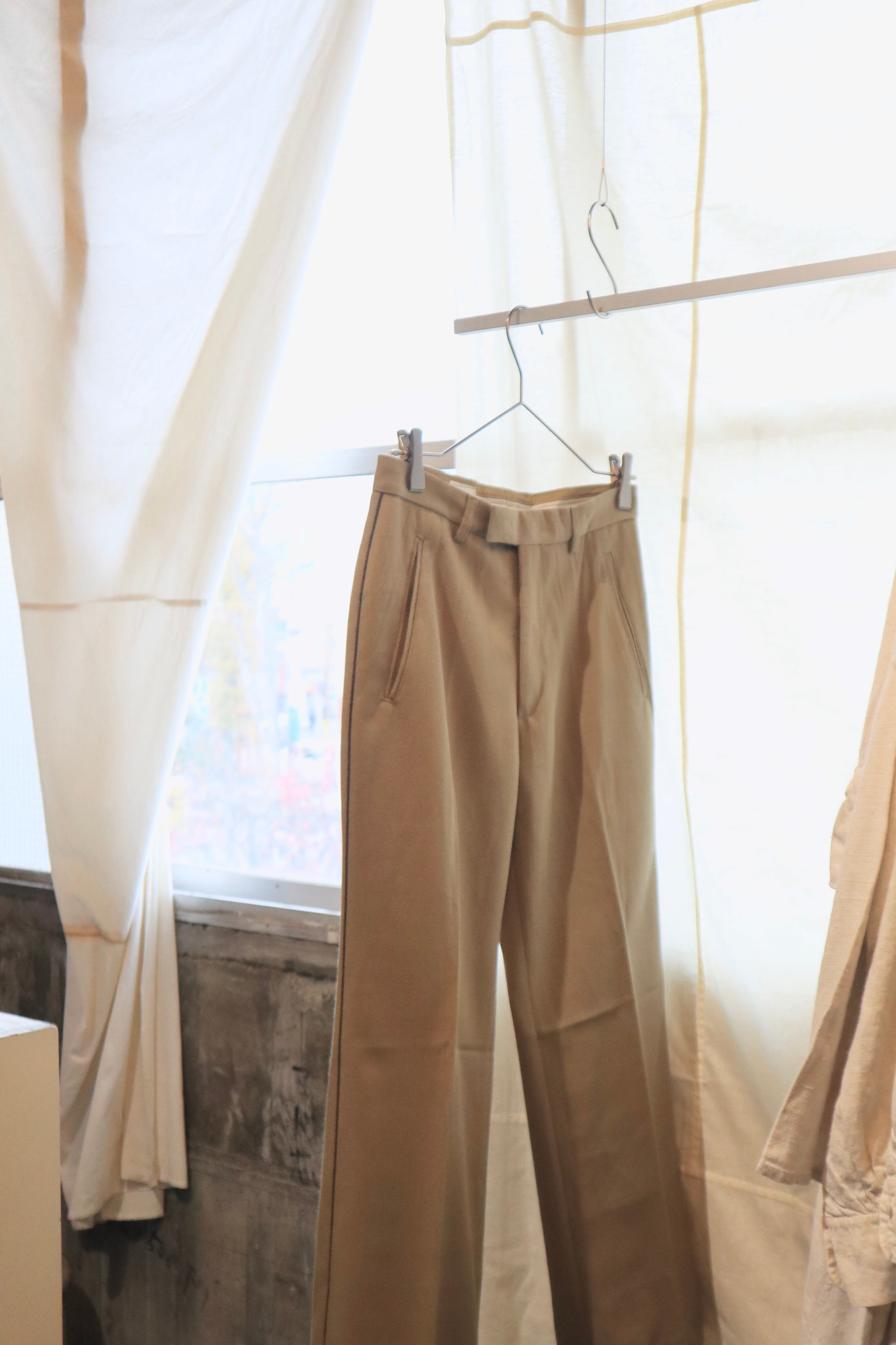 両サイドにブラウンのウールのようなライン刺繍が入ったフランス軍のドレスパンツ