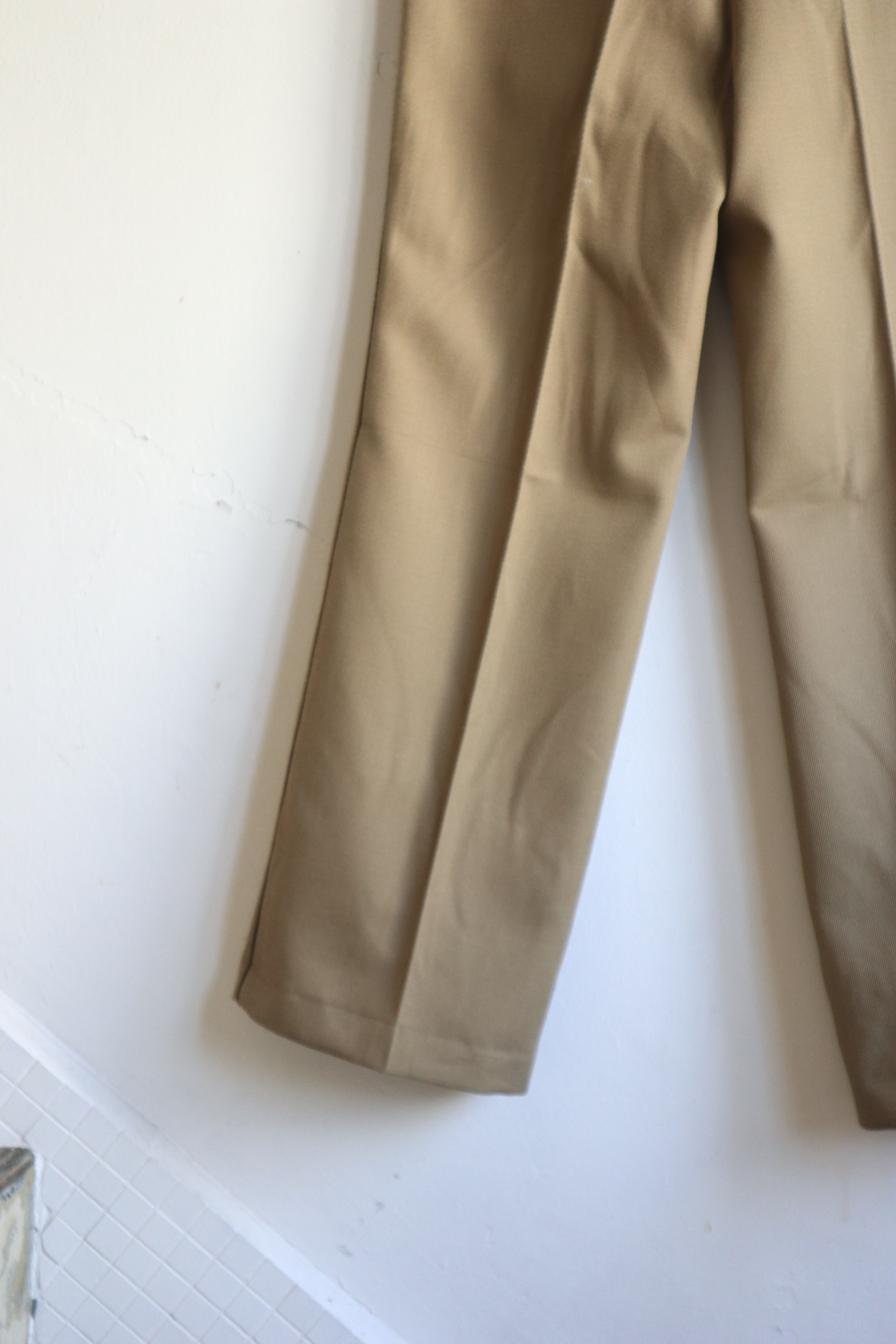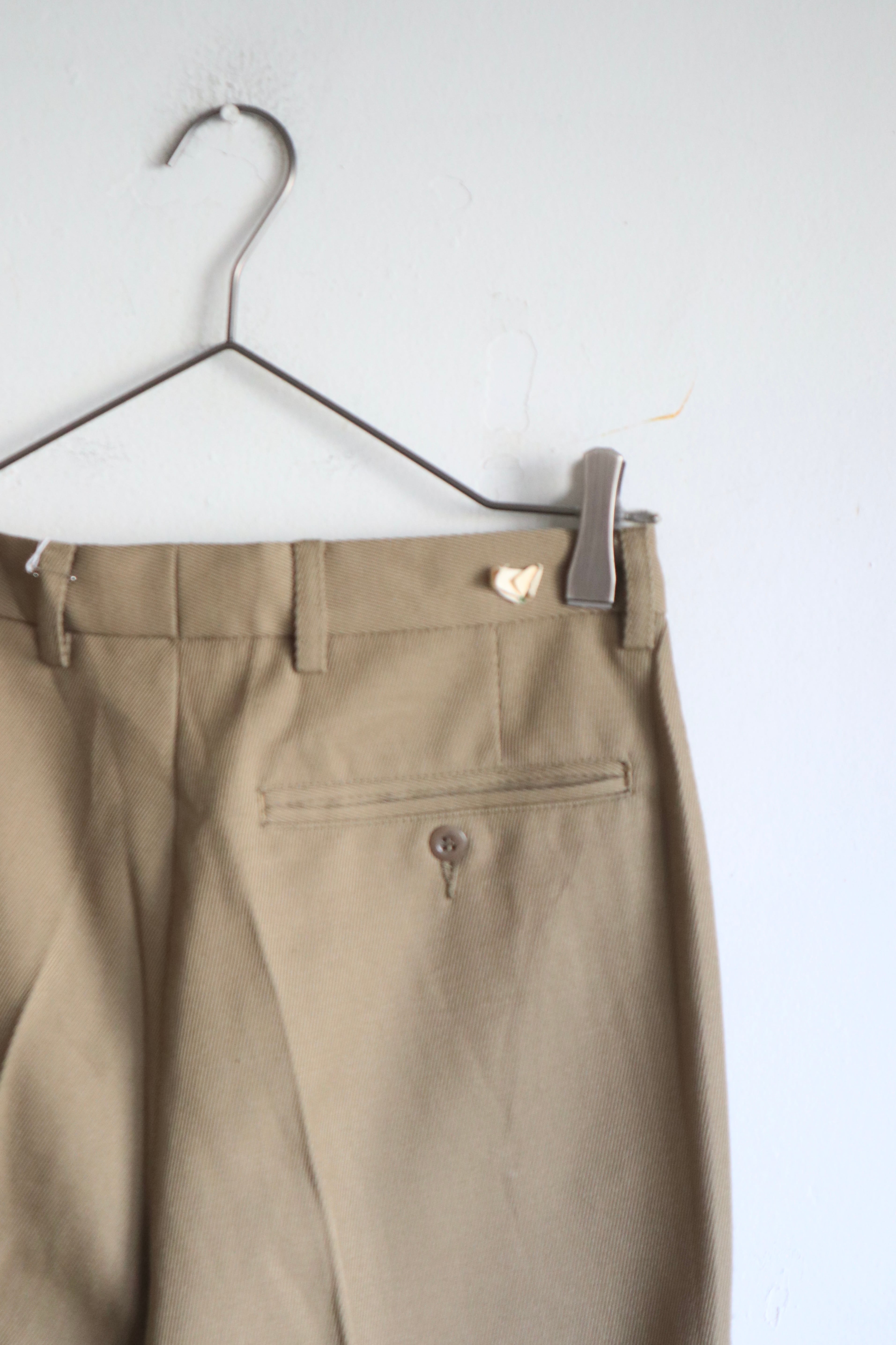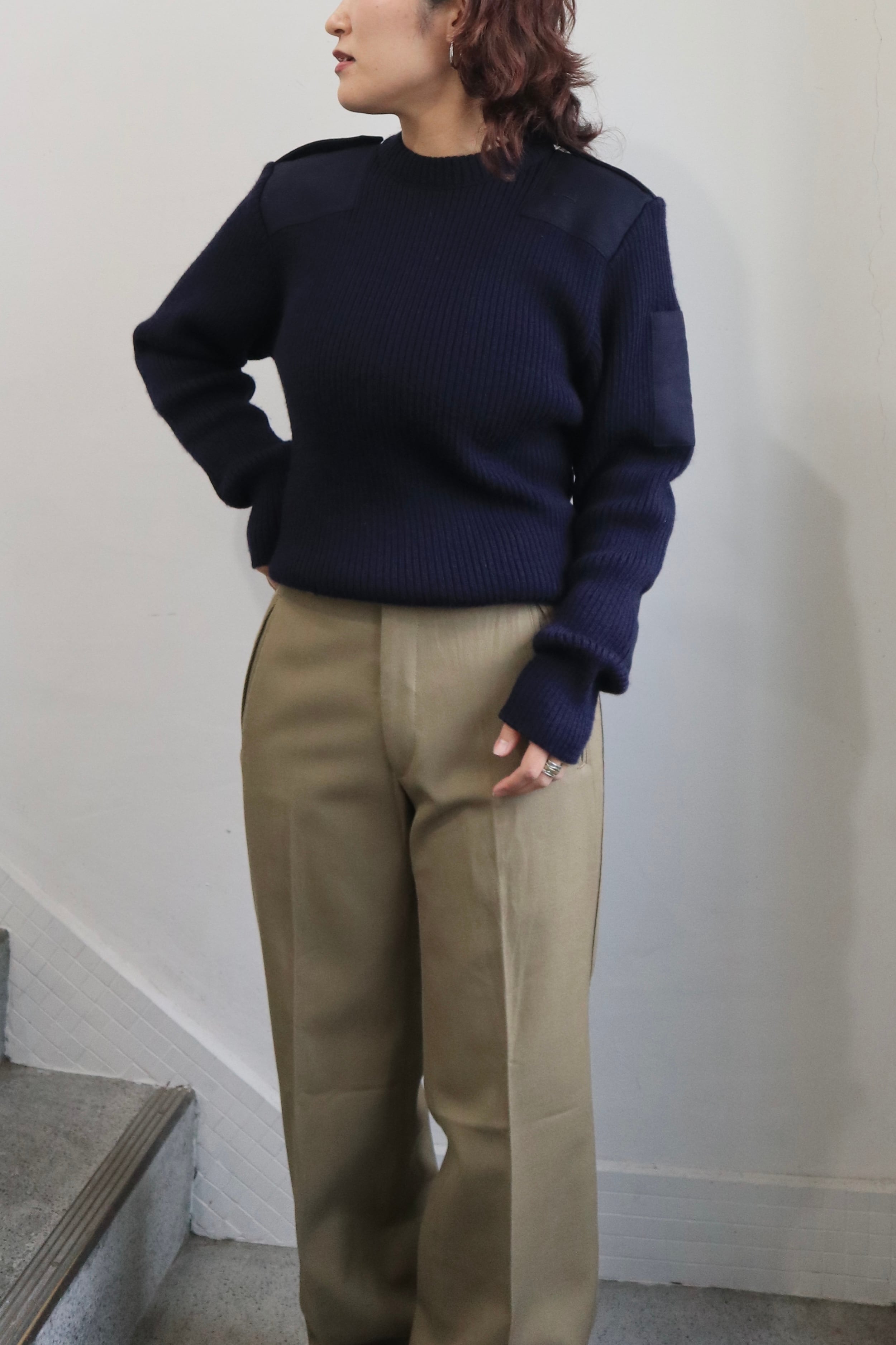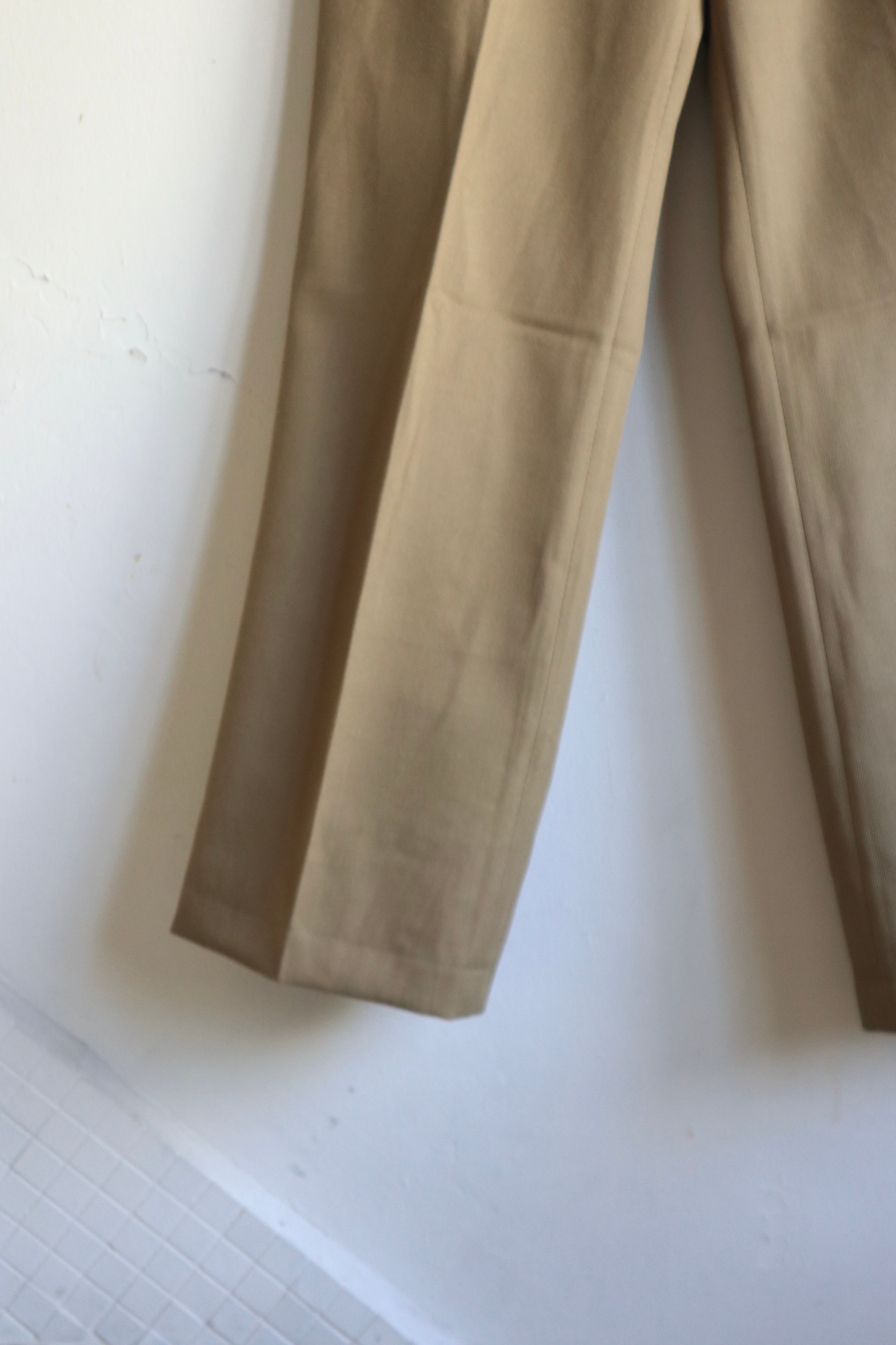 両サイドにブラウンのウールのようなライン刺繍が入ったフランス軍のドレスパンツ