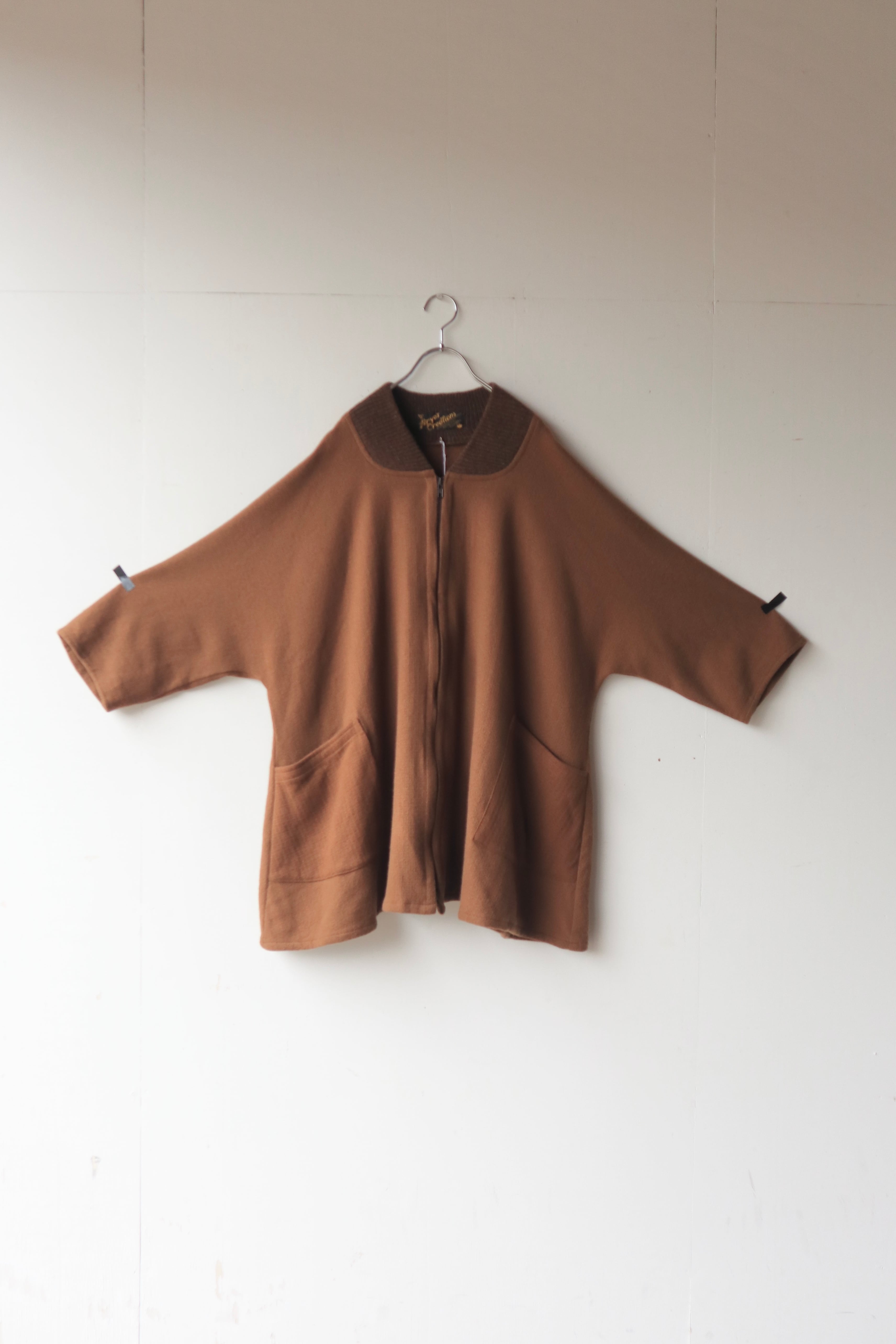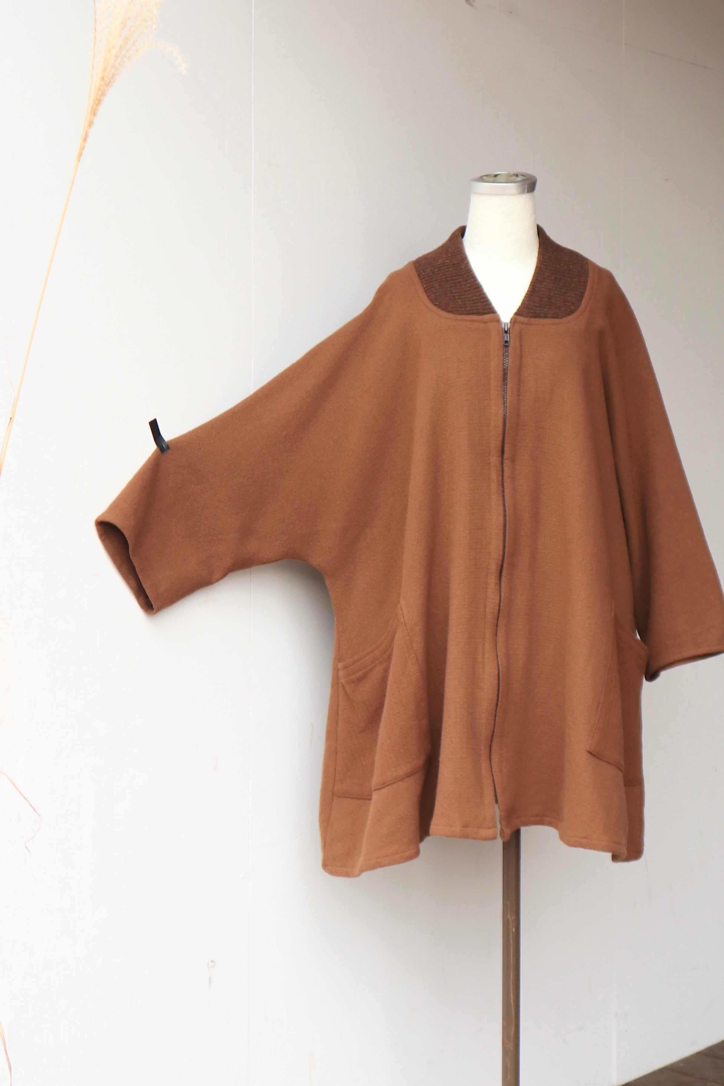 厚手のニットの上からでも窮屈にならず、ゆったりと羽織れるところが魅力のポンチョジャケット
