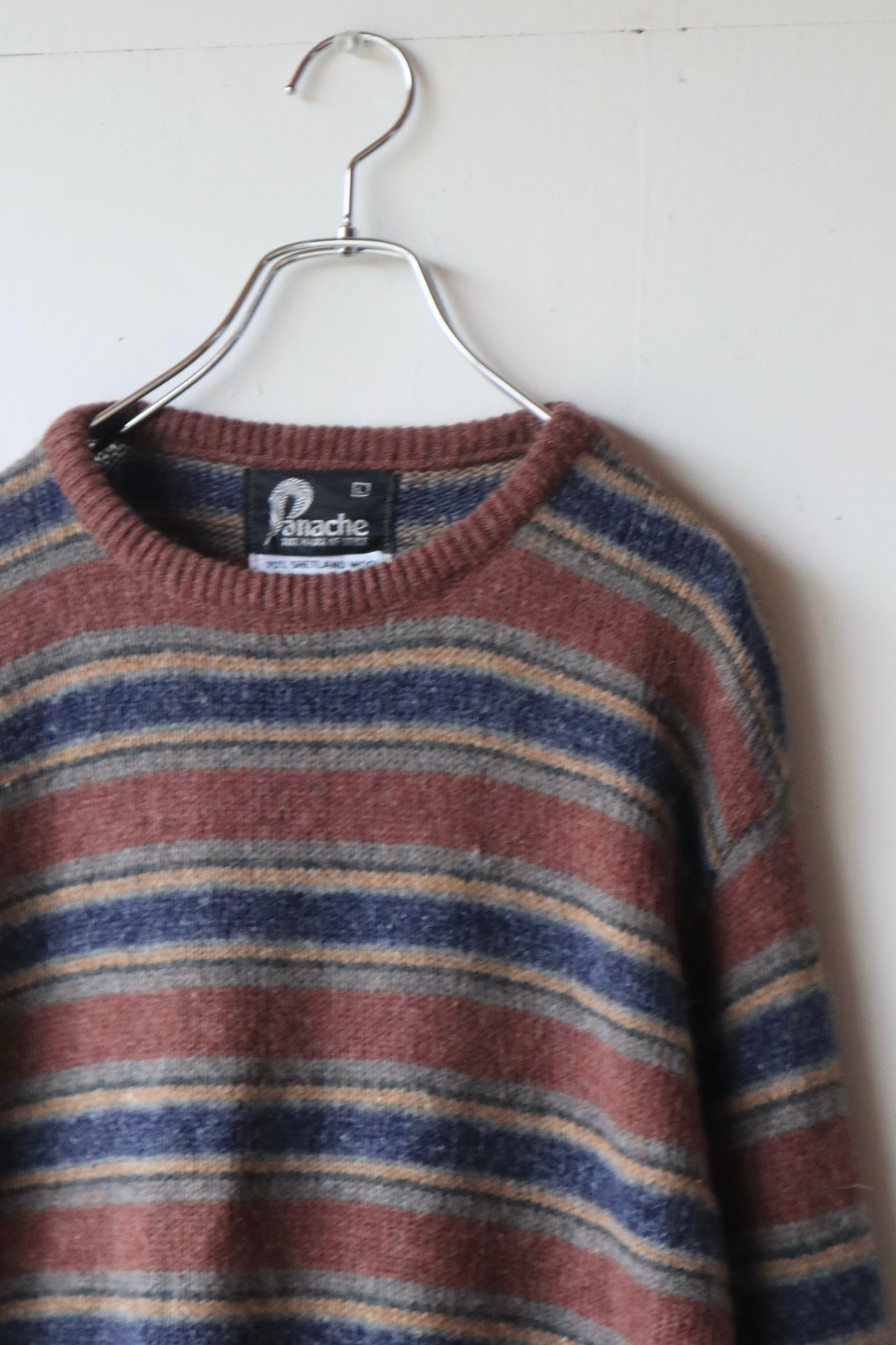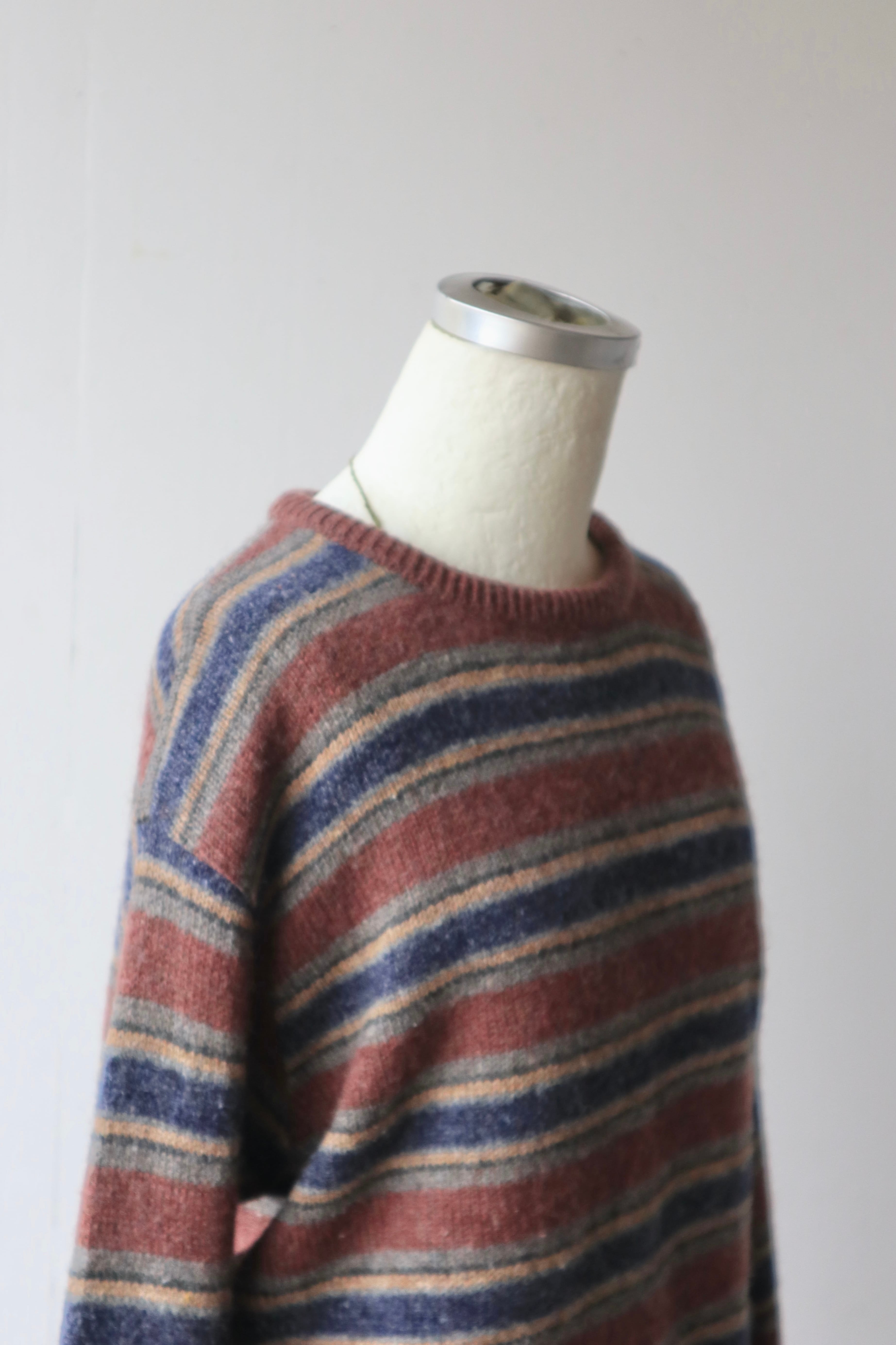 ウールの中でも特に柔らかく光沢感があるシェットランドウール混のニットセーター