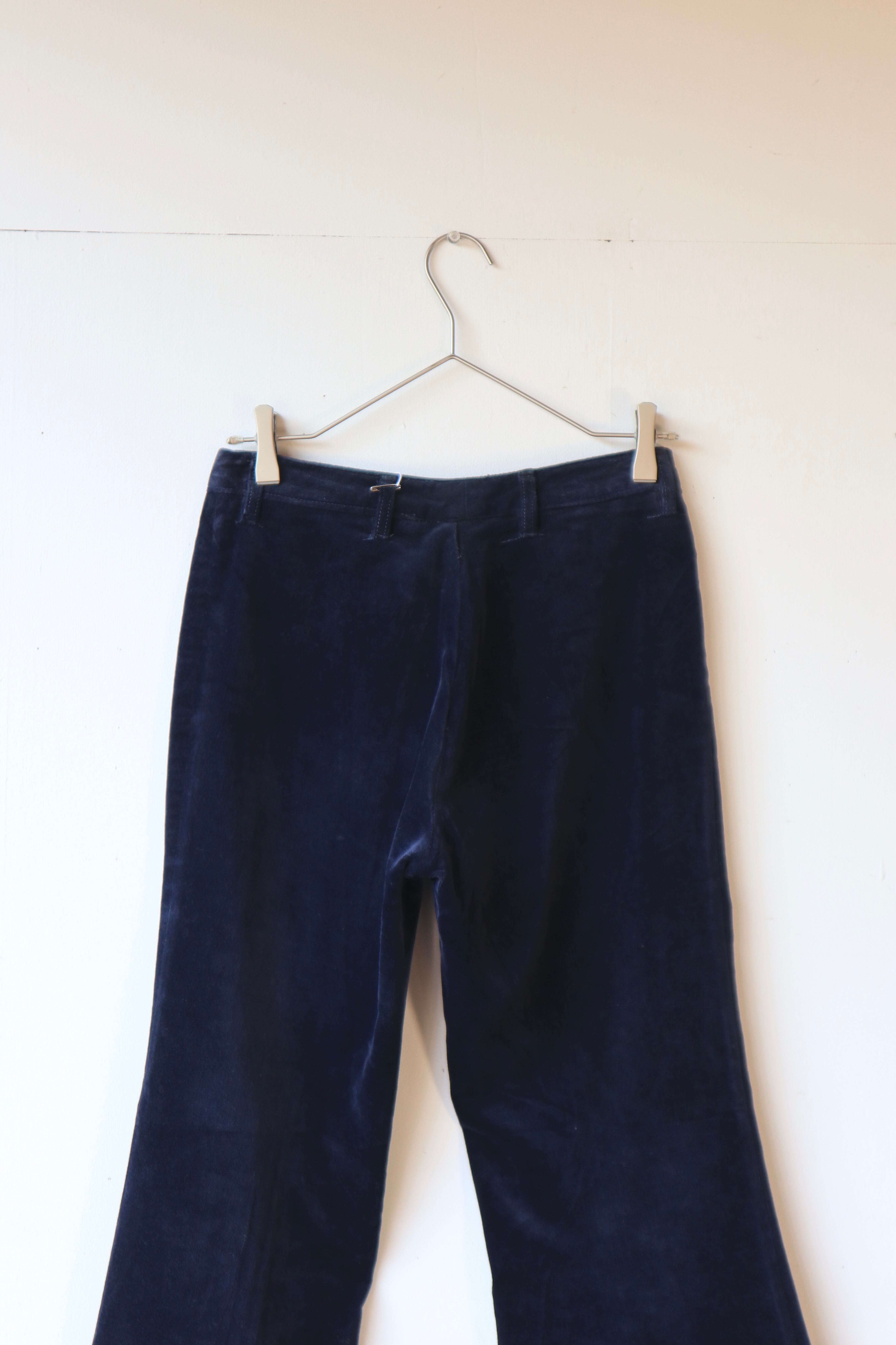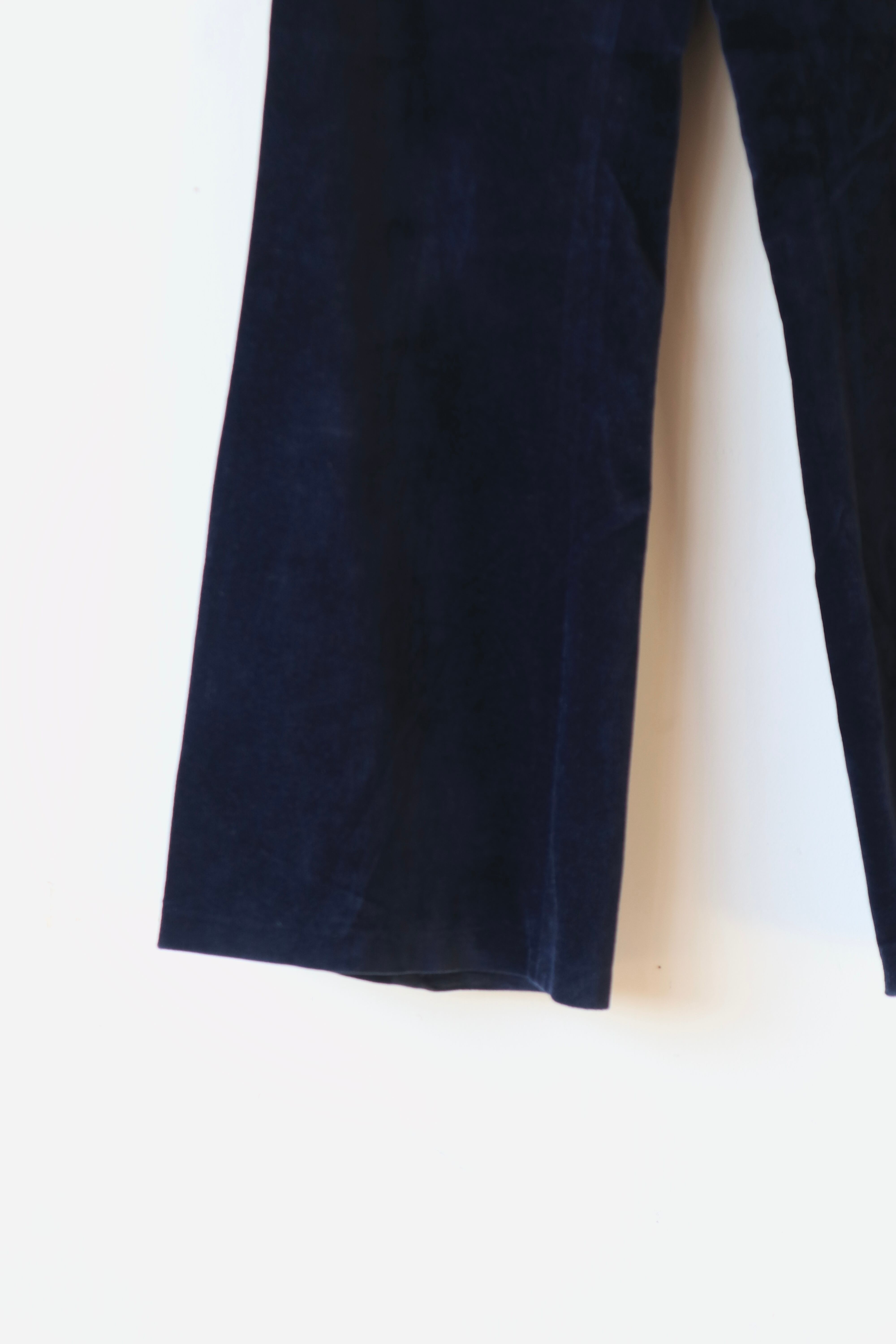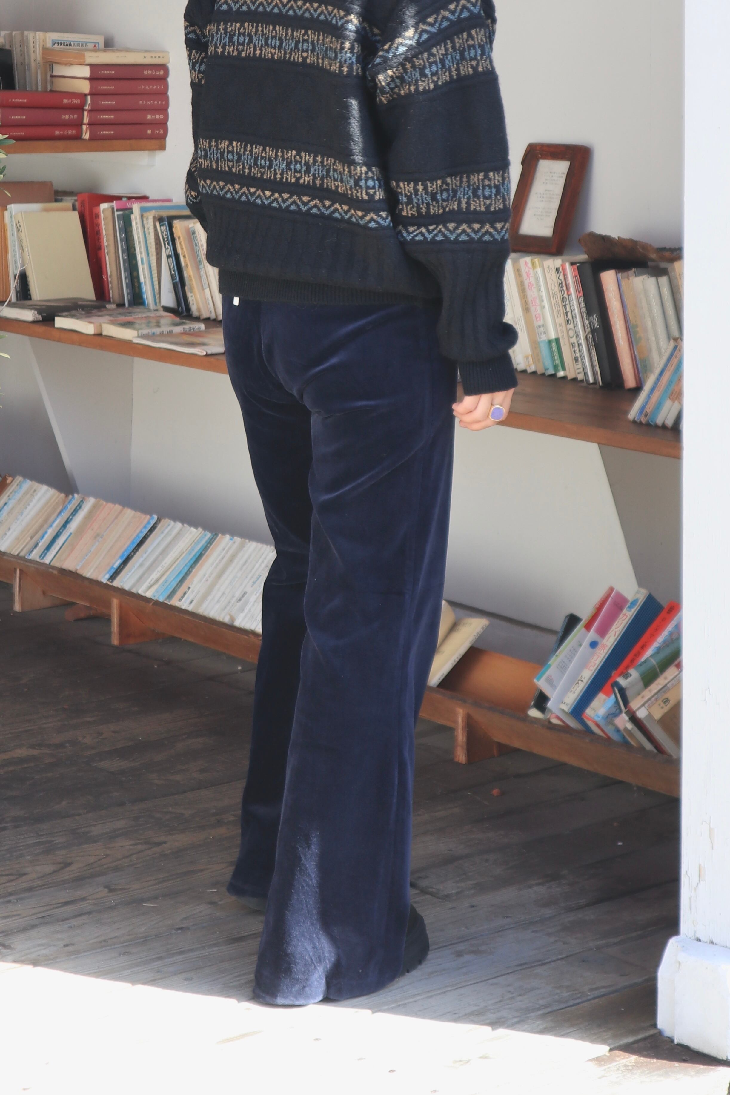 ネイビーカラーのベロアフレアパンツ
