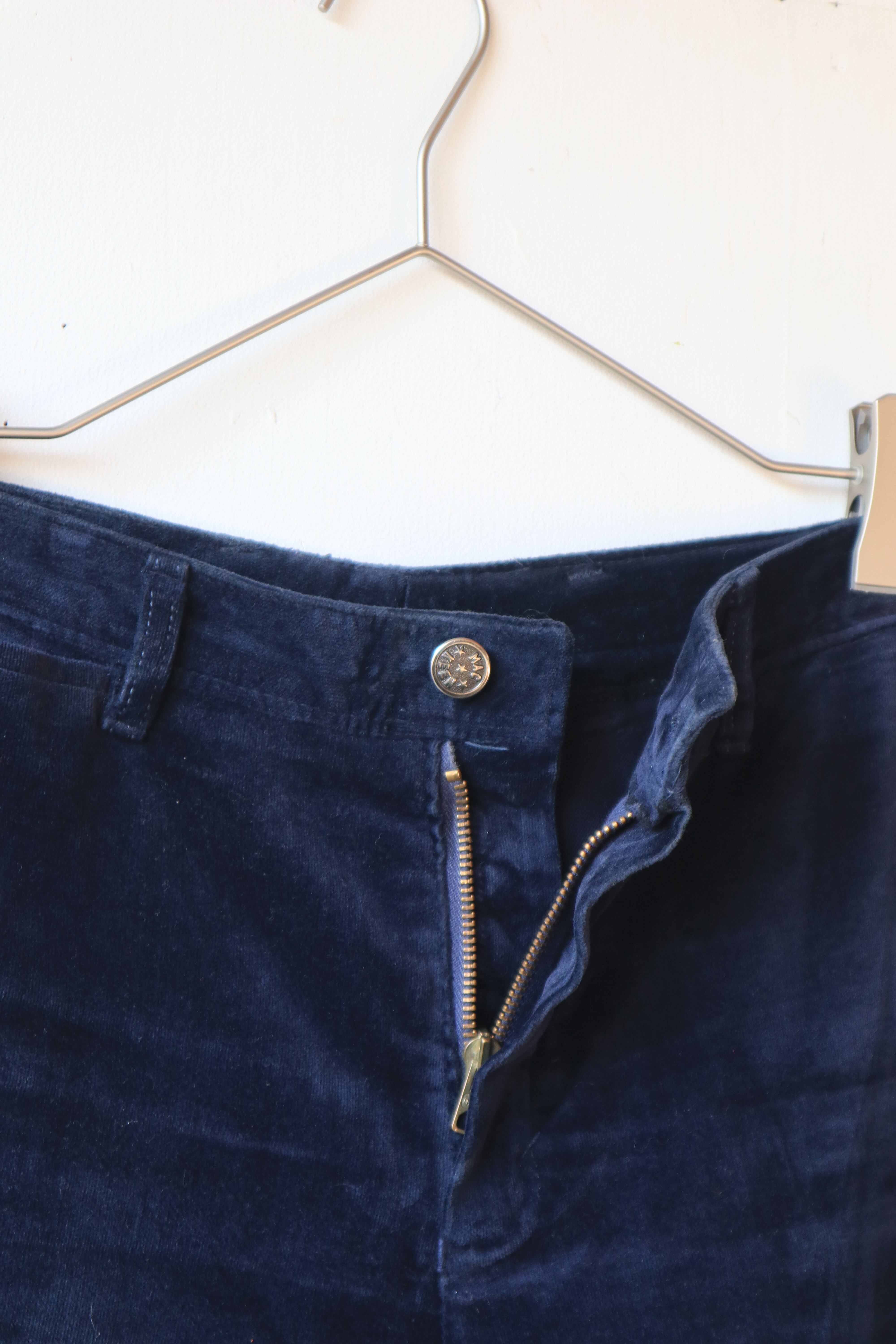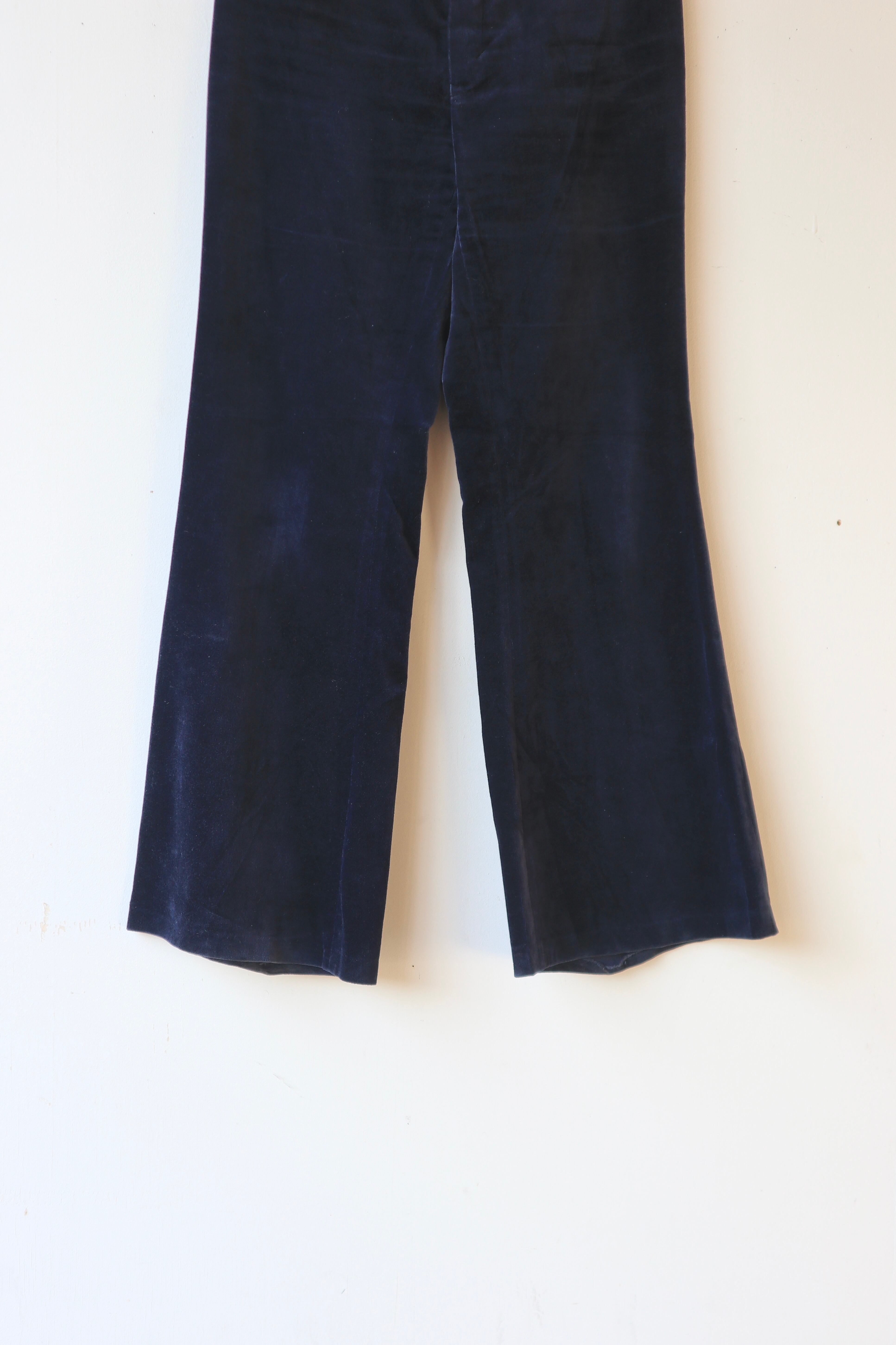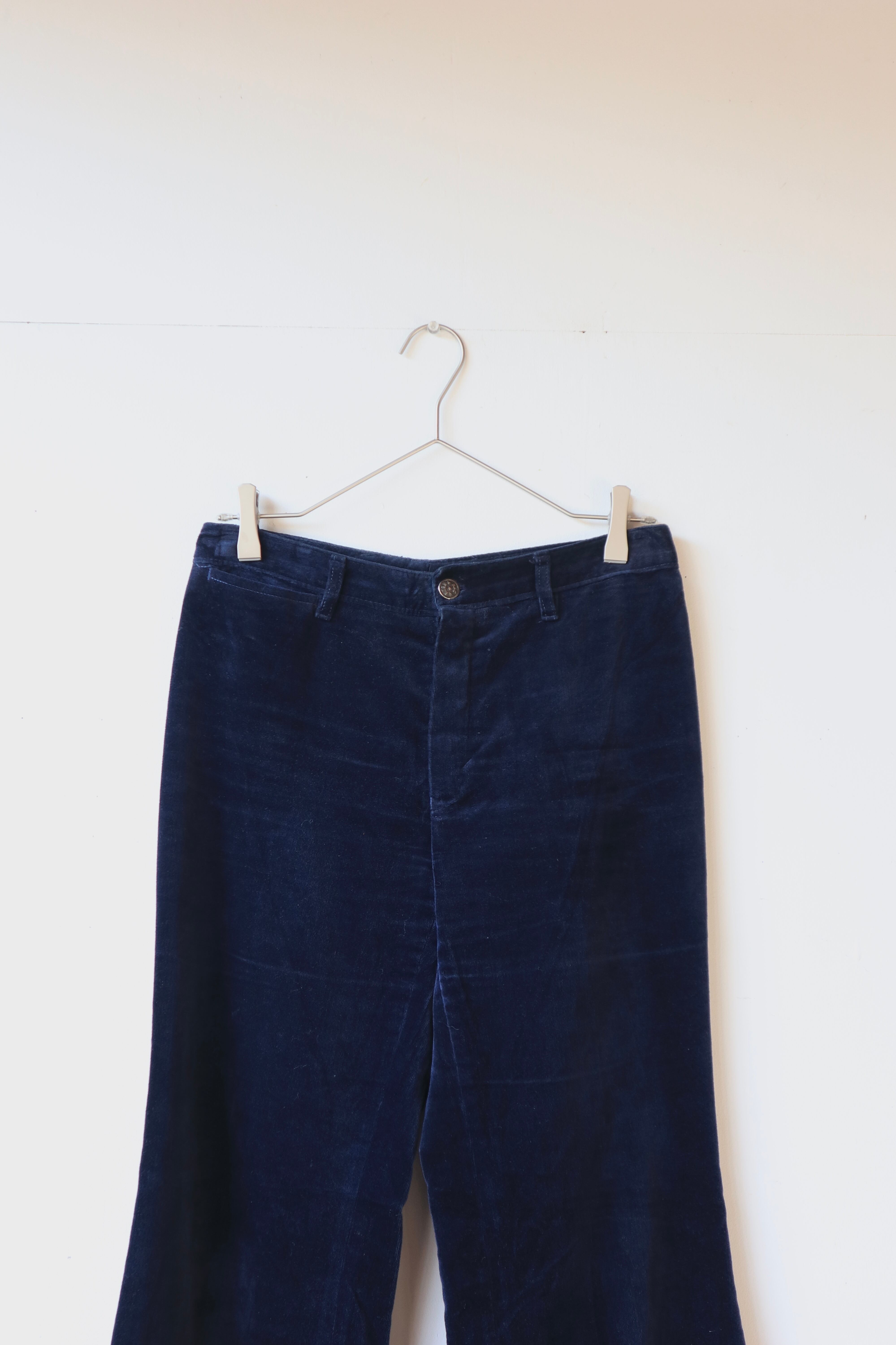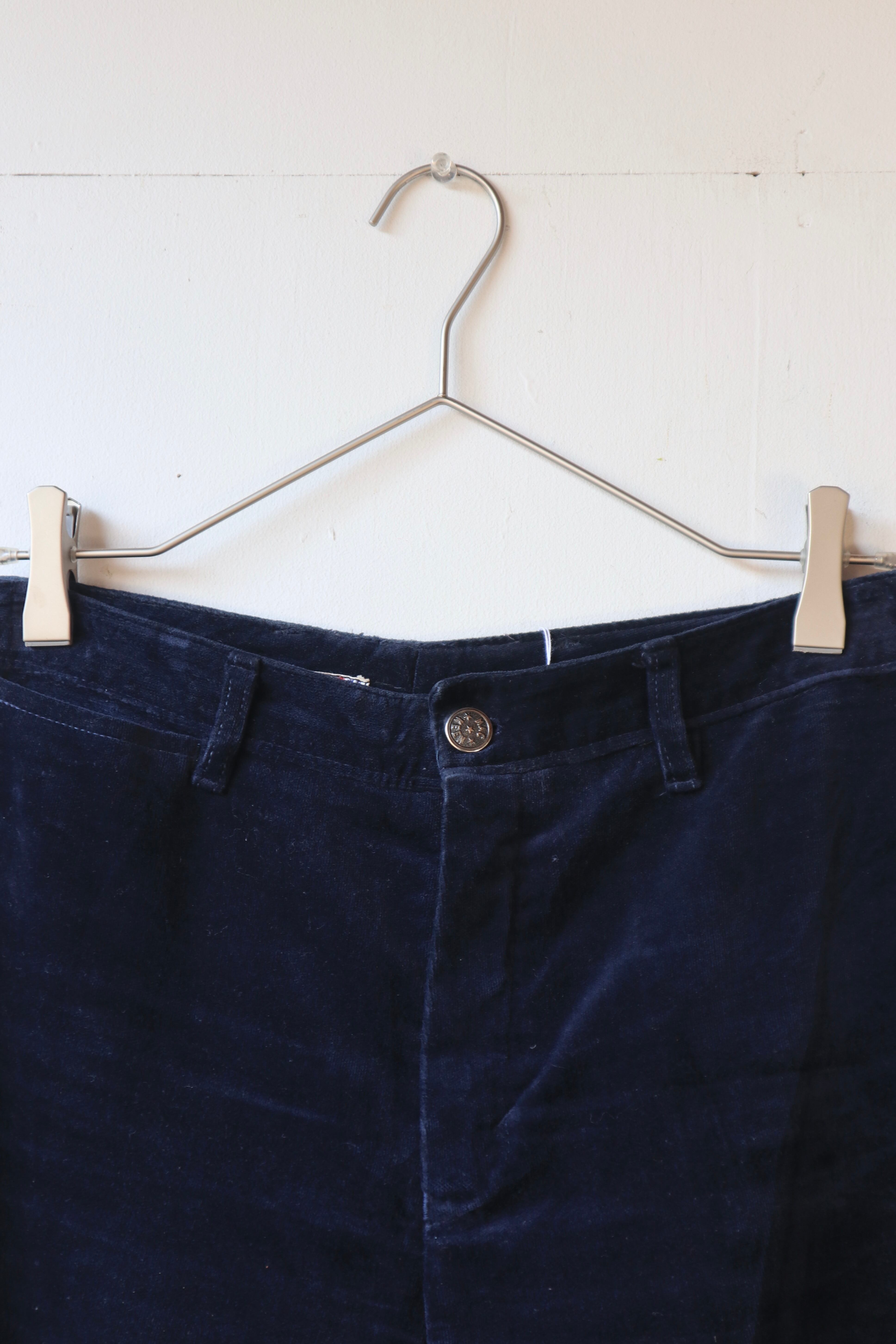 ネイビーカラーのベロアフレアパンツ