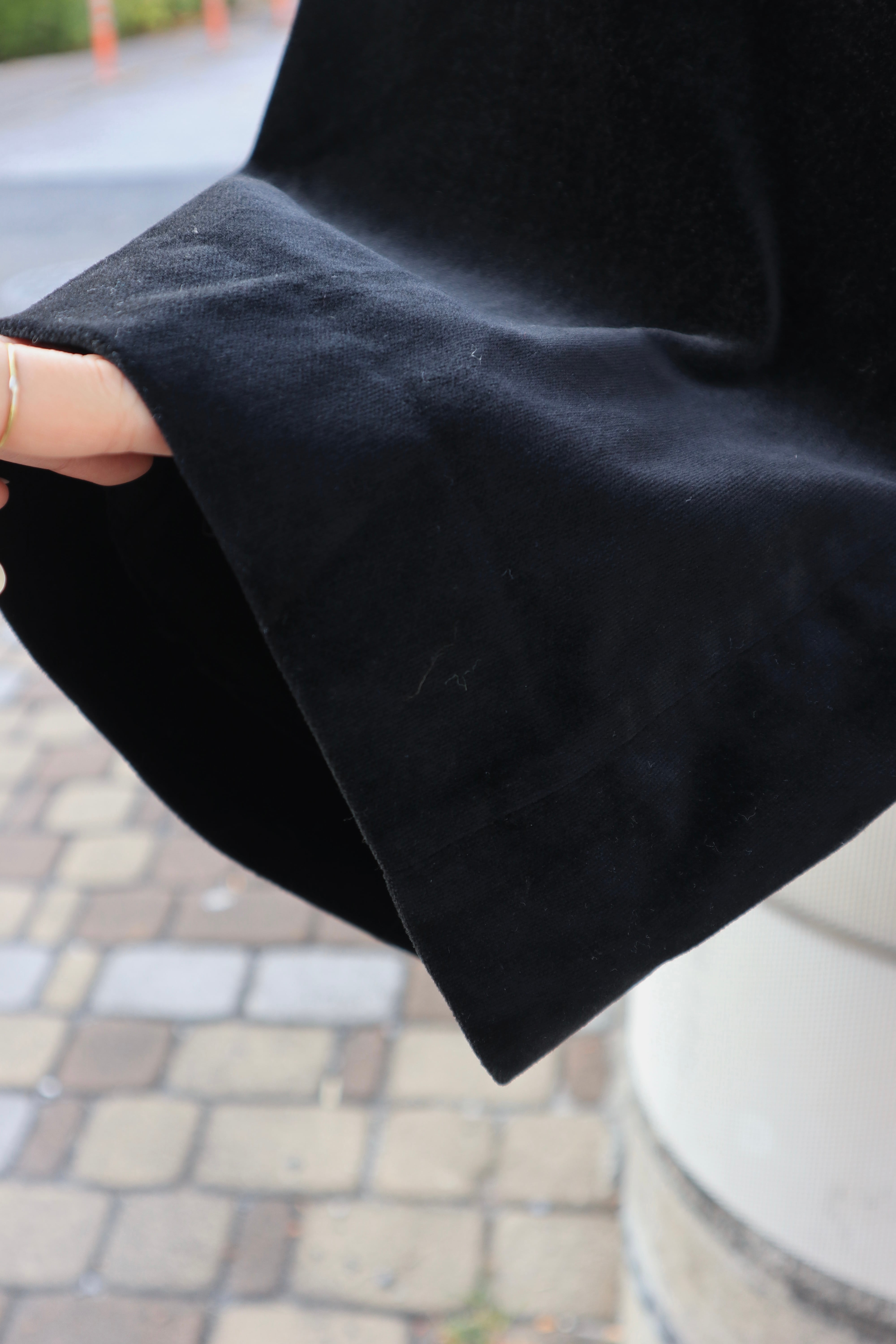 いつものコーディネートを秋冬のムードたっぷりに格上げする、ブラックのベロアパンツ
