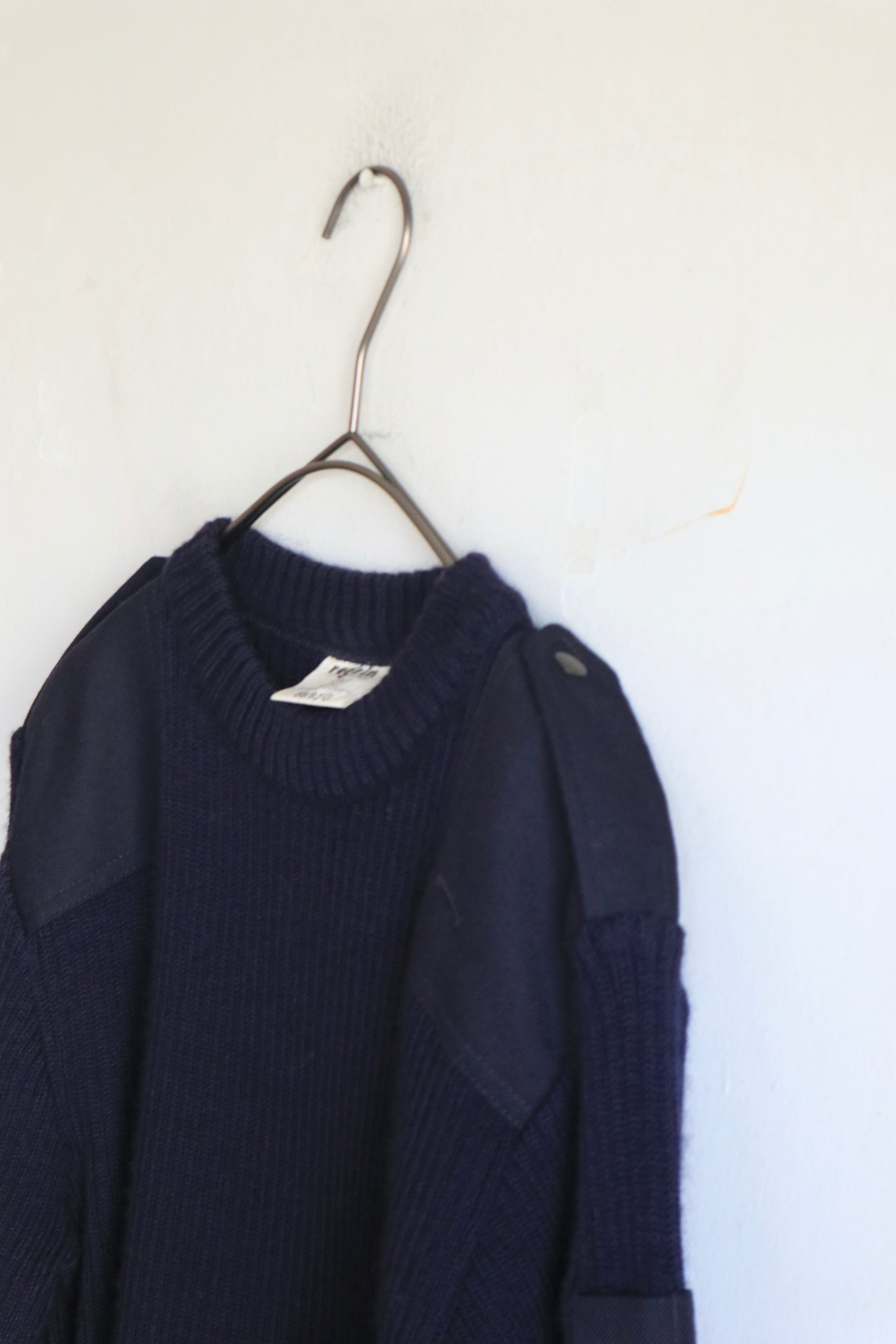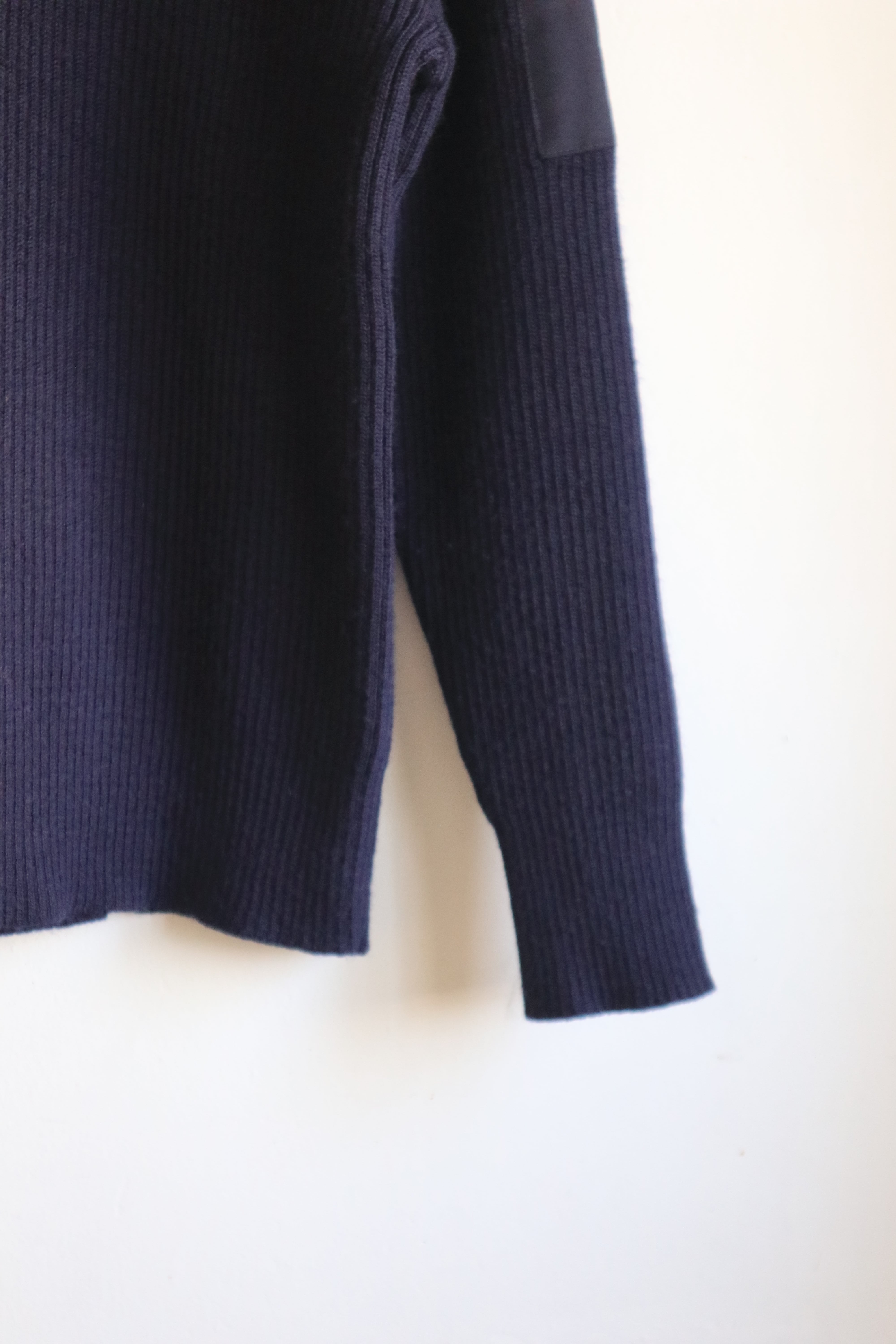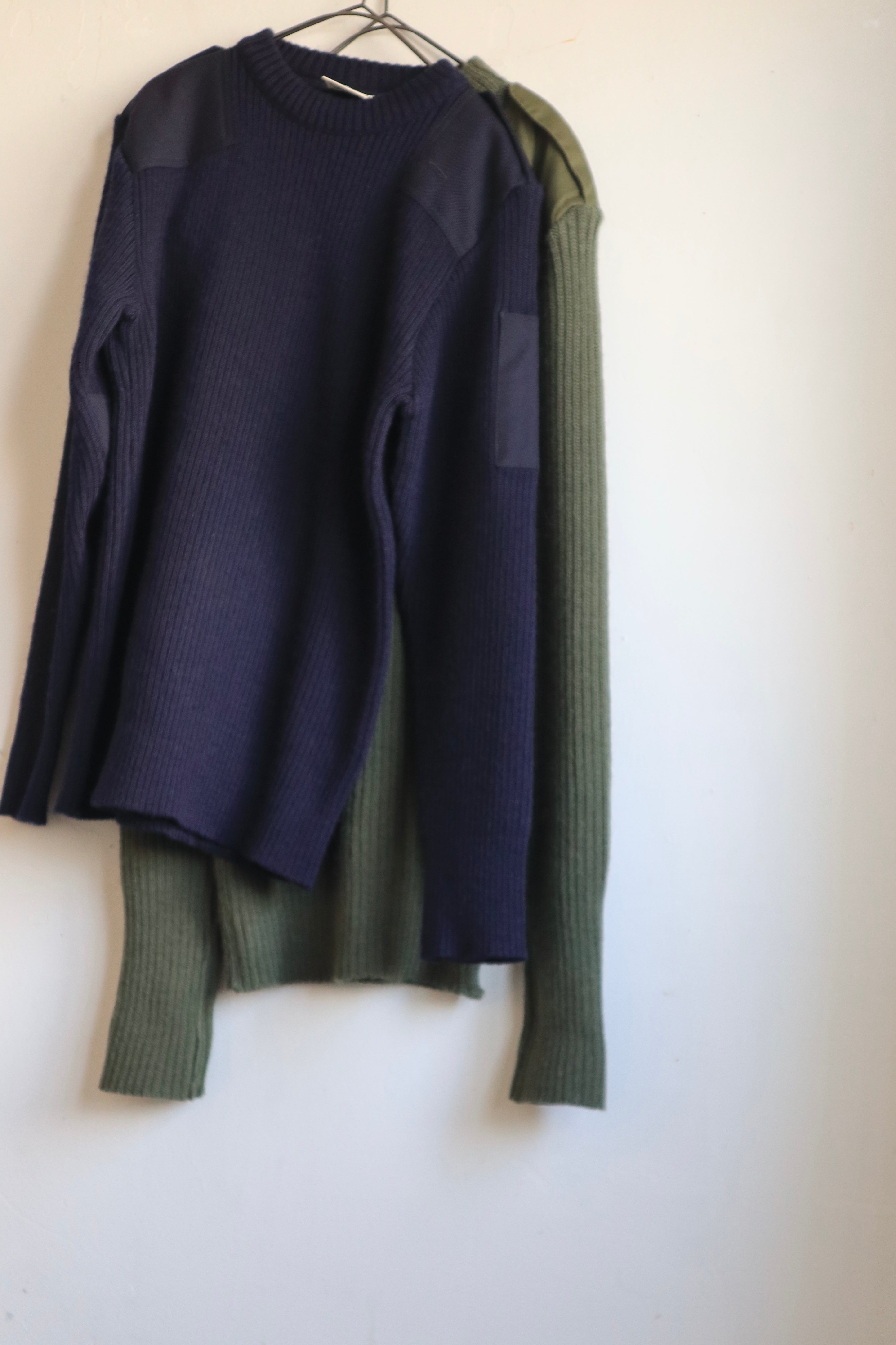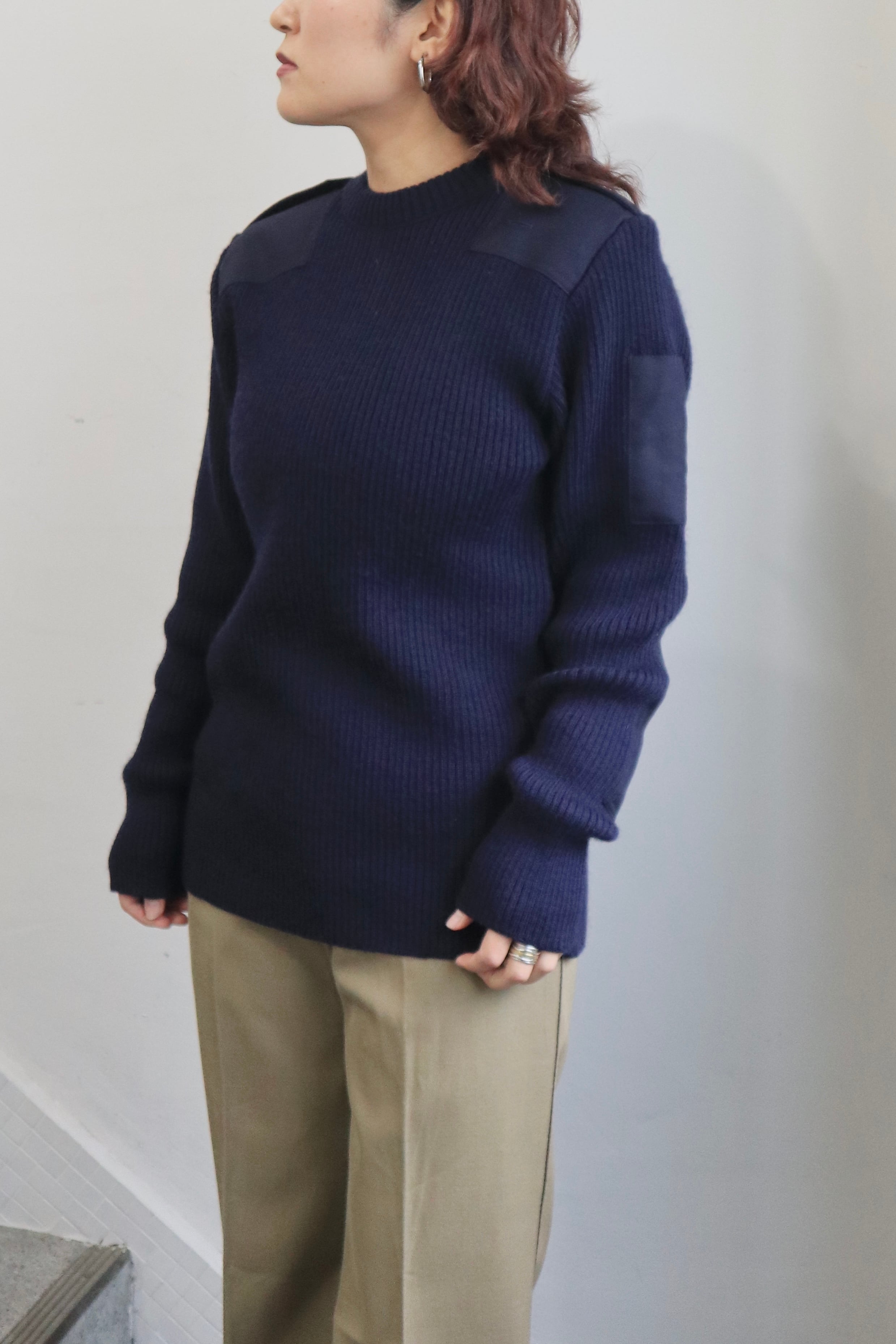 肩のエポレットや肘部分のあて布のデザインがミリタリーらしいフランス軍のコマンドセーター