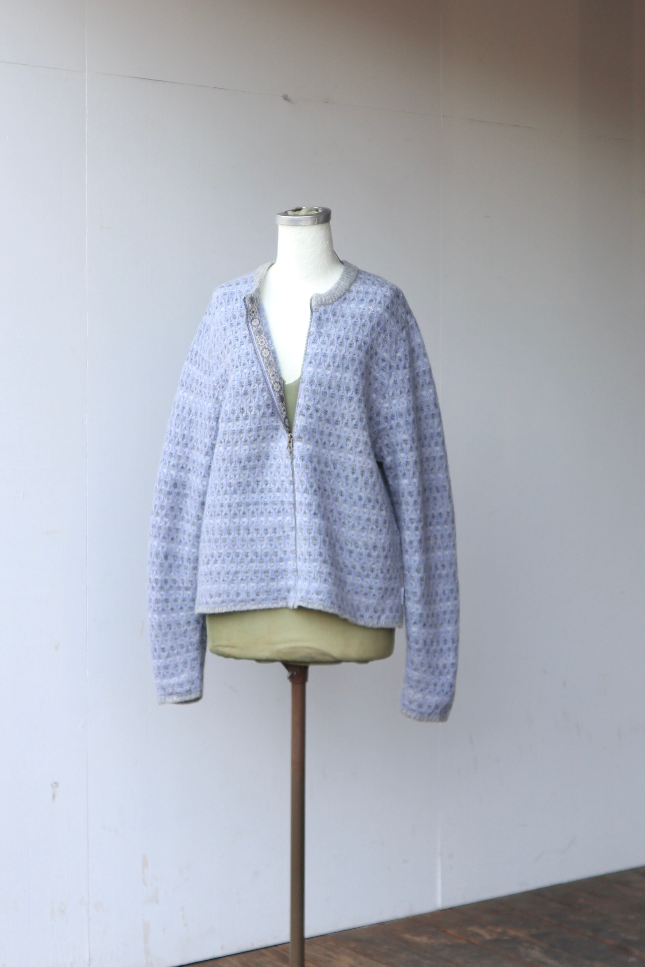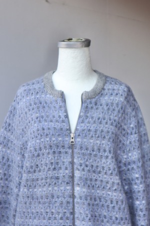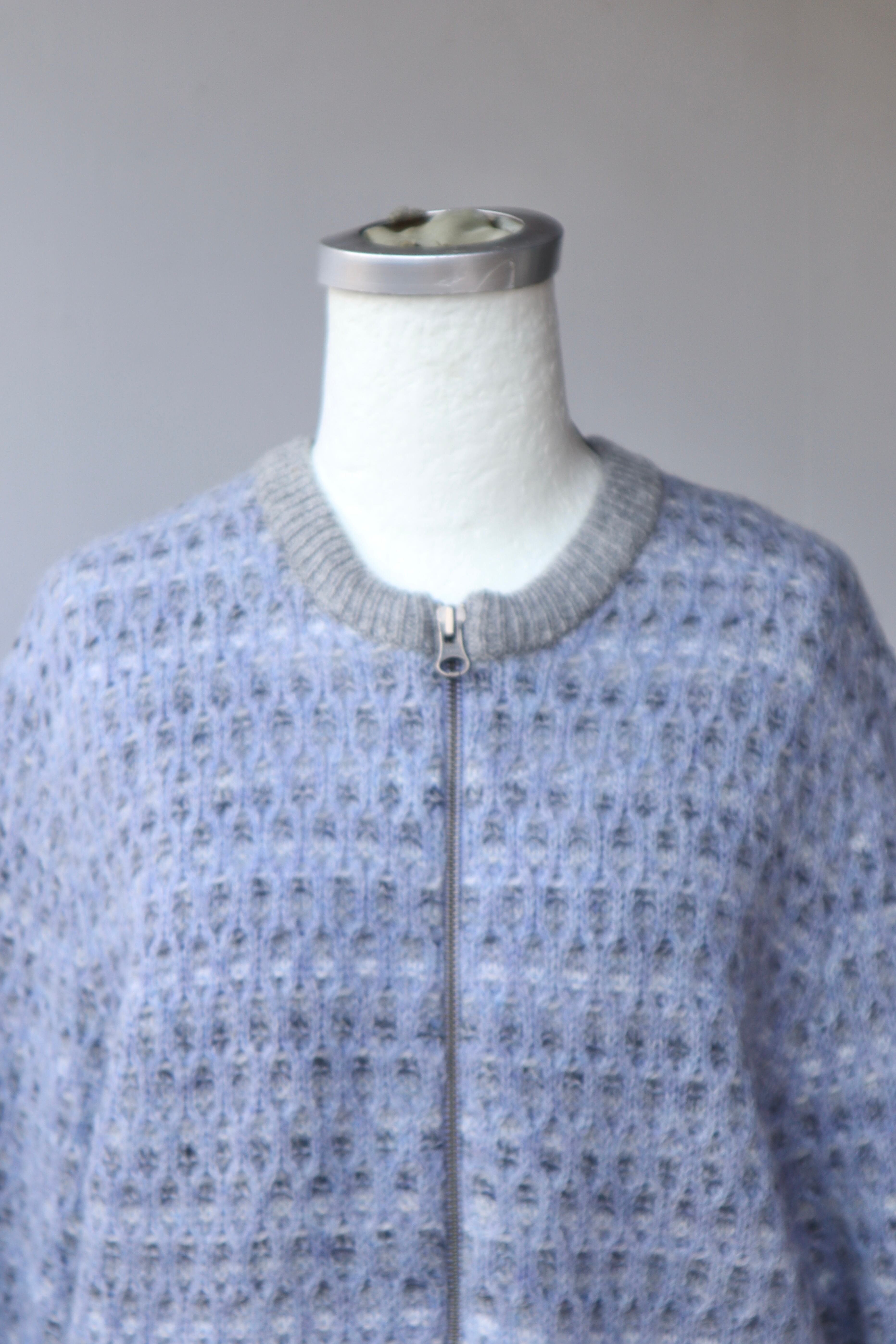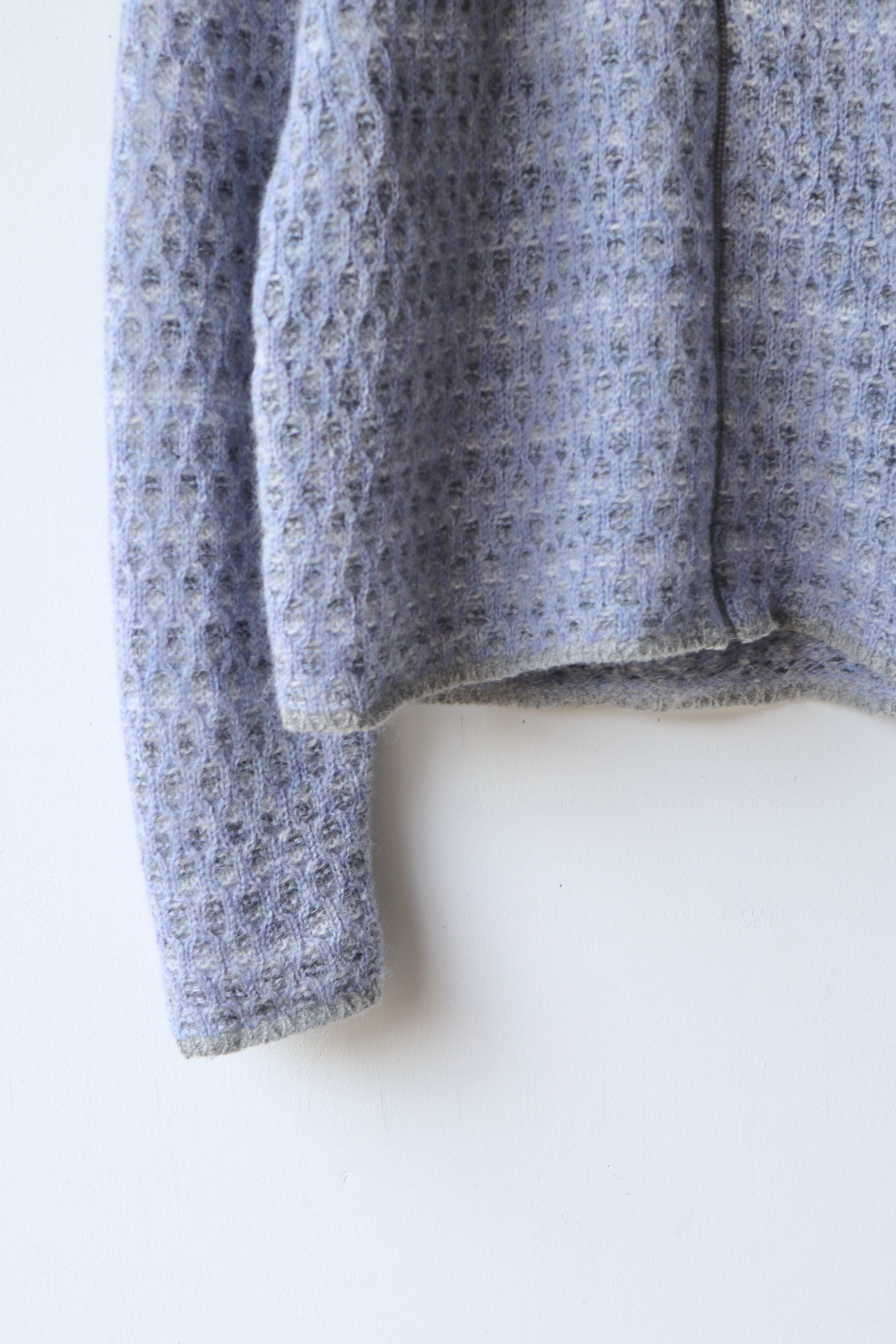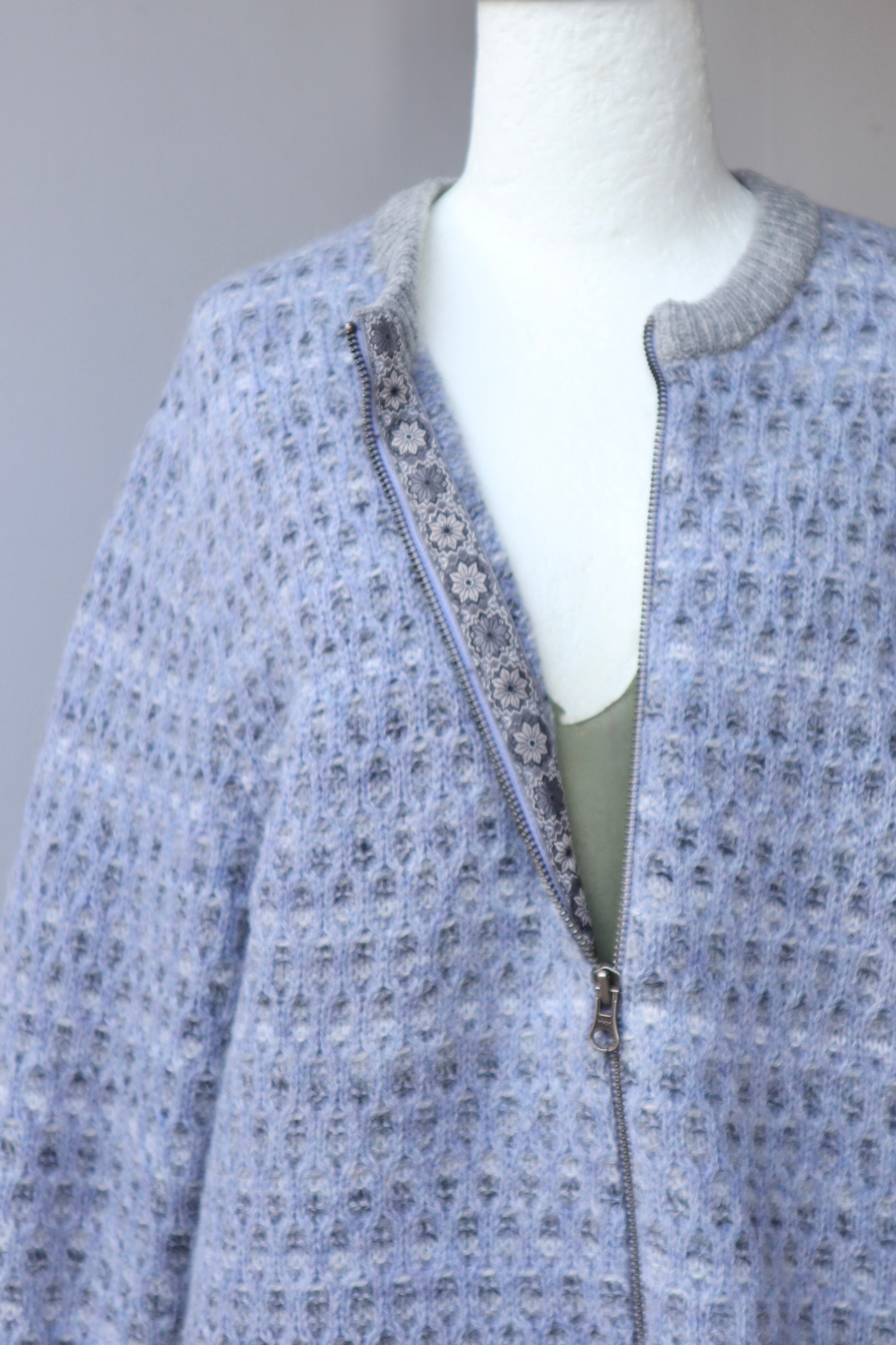 ブルーパープルとグレーの絶妙な色合いが可愛らしく、立体的な模様が目を引きます